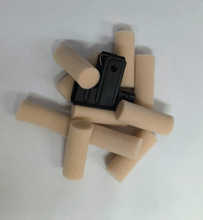 • Set for sticking a rubber to your blade, using water glue. Contains 10 sponges and 1 clip.